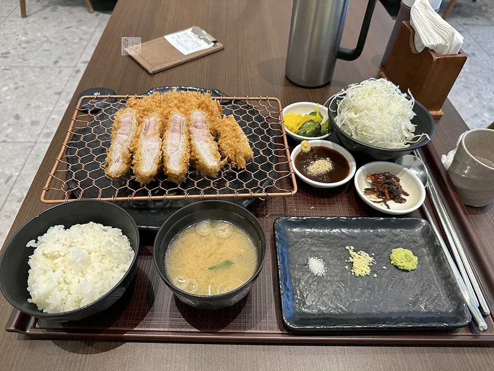내가 주문한 돈카츠는 자리가 생겨서 가게 안으로 들어와 자리에 앉자마자 바로 나오지 않았다. 5분~10분 정도 시간을 기다렸던 것 같은데… '언제 나오려나?' 기다리면서 가게 사진을 찍고, 2023 서울 국제 도서전을 돌아다니느라 지친 다리를 쉬고 있었더니 마침내 위 사진에서 볼 수 있는 정돈 강남저의 스페셜 등심 돈카츠가 나왔다.