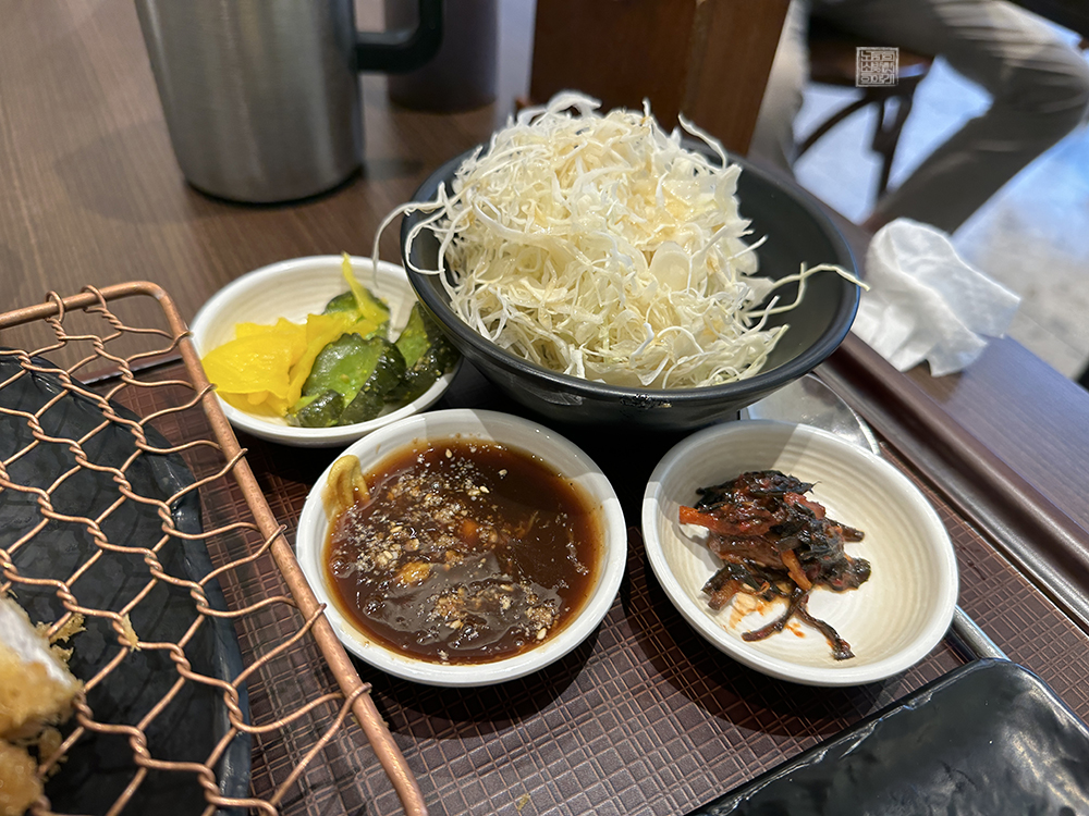 정돈 강남점에서 판매하는 스페셜 등심 돈카츠의 모습을 본다면 단무지와 함께 피클, 소스와 함께 배추김치가 아닌 조금 다른 김치와 톤지루가 밥과 함께 나온 것을 볼 수 있다. 밥의 양이 너무 적었던 건 살짝 아쉽기는 했지만, 스페셜 등심 돈카츠의 주인공인 돈가스에 집중해서 먹는 구성이라고 생각한다면 딱히 나쁘지 않은 양이었다.