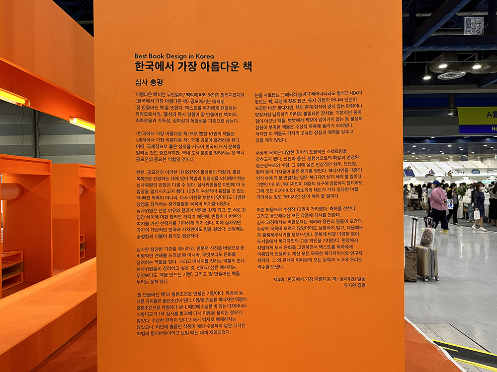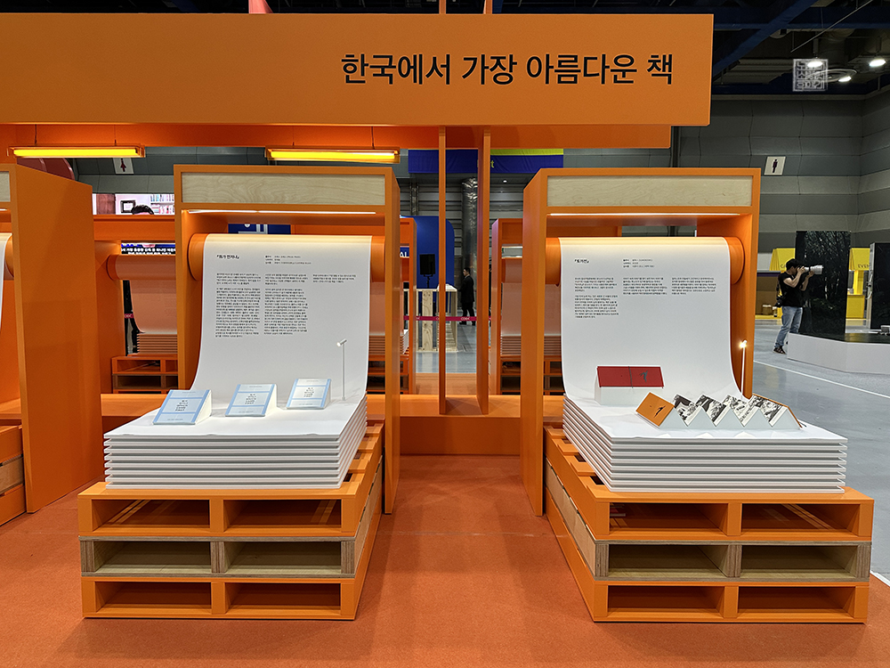 2023 서울국제도서전 전시홀의 오른쪽 벽면 부분을 본다면 '한국에서 가장 아름다운 책'이라고 해서 '한국에서 가장 아름다운 책' 공모에서 선정된 책들을 만나볼 수 있다. 그냥 단순하게 본 책의 표지와 구성을 이렇게 깊이 해석해서 책에 대한 평가를 해놓은 것이 신기했고, 평소 책을 읽으면서 생각하지 못했던 부분이라 꽤 흥미롭기도 했다.