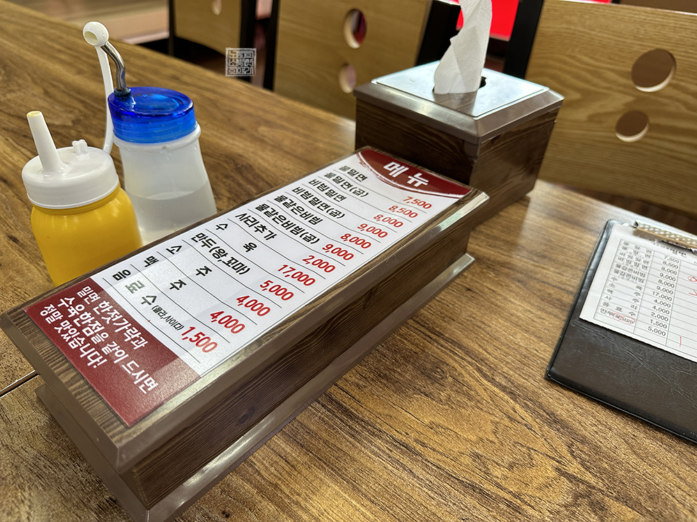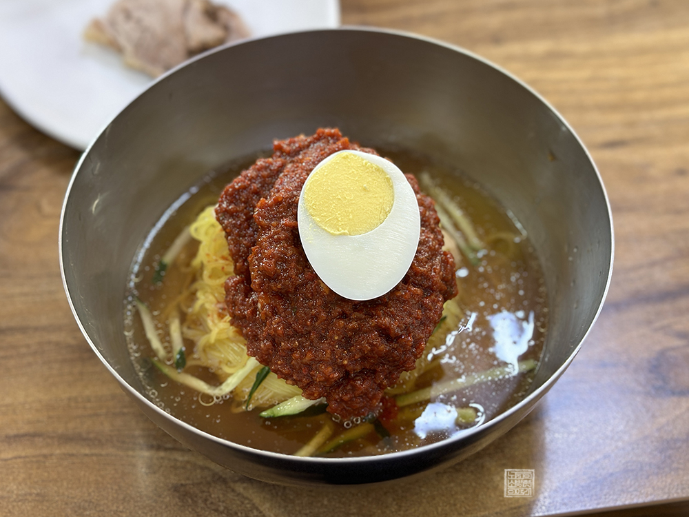나와 어머니가 주문한 건 물밀면도 비빔밀면도 아닌 물 같은 비빔밀면이다. 물밀면이면 물밀면이고, 비빔밀면이면 비빔밀면인데 물 같은 비빔밀면이 이해가 가지 않는 사람도 있을 것으로 생각한다. 솔직히 나도 처음에는 뭐가 다른 건지 알 수 없었지만, 물 같은 비빔밀면은 일반 비빔밀면보다 물이 조금 더 많아서 연하게 먹을 수 있다.