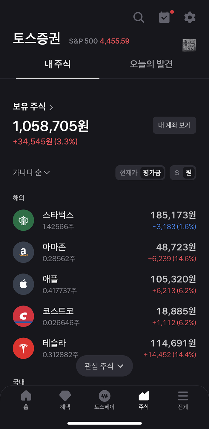 지난 2023년 상반기 동안 토스 주식 모으기를 통해서 짬짬이 모은 주식들이 생각보다 많이 쌓였다. 물론, 중간에 카드값을 내기 위해서 주식을 팔지 않았다면 위 사진에서 볼 수 있는 금액보다 훨씬 더 많이 모였겠지만, 나는 주식에 투자할 돈과 생활비로 쓸 돈을 따로 나눌 수 있을 정도로 소득이 많지 않다 보니 다른 선택지가 없었다.