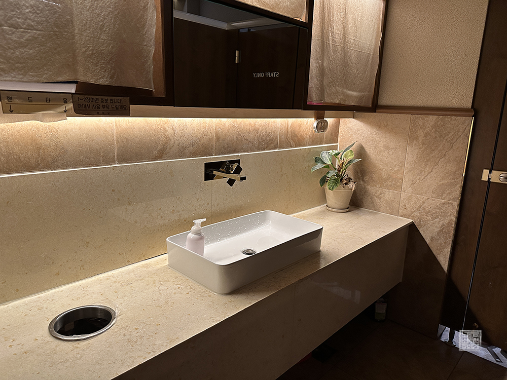 해이담 커피의 화장실은 2층에 자리를 잡고 있는데, 이렇게 가게의 바깥쪽과 안쪽이 깨끗한 카페이다 보니 해이담 커피의 화장실도 마치 호텔의 화장실을 떠올릴 정도로 깔끔하게 잘 정돈되어 있었다. 화장실 변기가 비데가 아니라는 건 아쉽기는 해도 화장실도 무척 깨끗하고 넓었다. 김해에서 가본 여러 카페 중에서 이곳이 가장 좋았다.