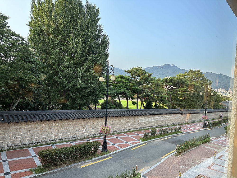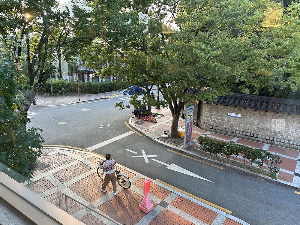 해이담 커피 2층에서 내려다볼 수 있는 풍경은 김해 수로왕릉으로 이어지는 돌담길이 있어 푸른 나무와 돌담이 상당히 매력적으로 다가온다. 우리가 드라마에서 흔히 볼 수 있는 서울 덕수궁 돌담길 부럽지 않은 김해 수로왕릉 돌담길은 천천히 걷기에도 좋지만, 이렇게 해이담 커피 2층에서 내려다 보아도 정말 예쁘다는 걸 알 수 있다.
