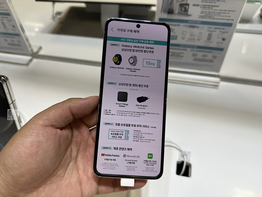 사전 구매를 하지 않아도 일반 구매로 받을 수 있는 혜택 중에서는 삼성닷컴 앱 갤럭시 워치 6 시리즈 10만 원 할인 쿠폰과 함께 삼성닷컴 앱 30% 할인 쿠폰, 정품 보호 필름 1회 한정 무료 부착 서비스, 유튜브 프리미엄 4개월 무료 체험, 마이크로소프트 365 베이직 6개월 체험, 윌라 3개월 무료 이용권이 포함되어 있으니 참고하도록 하자.