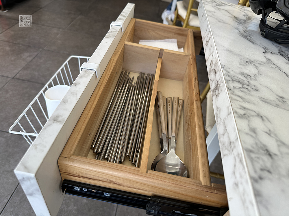 카츠발전소의 매장 안에 있는 테이블의 수는 많지 않았다. 1~2인(사실상 1인용이라고 생각한다)이 앉을 수 있는 테이블이 2개 있었고, 4인 좌석이 총 5개 정도 있어 사람이 붐빌 때는 쉽게 테이블에 앉을 수 없을 듯했다. 하지만 당일 12시가 조금 넘어서 방문했을 때도 모든 테이블이 다 차지 않았기 때문에 가게 이용에 불편함은 없어 보였다.
