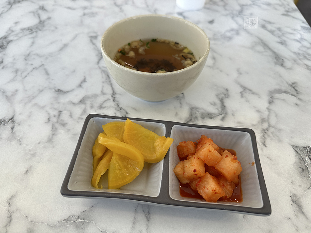 셀프 코너를 통해 단무지, 깍두기, 국물을 덜어서 가져온 이후 얼마 지나지 않았을 때 마침내 등심카츠가 나왔다.