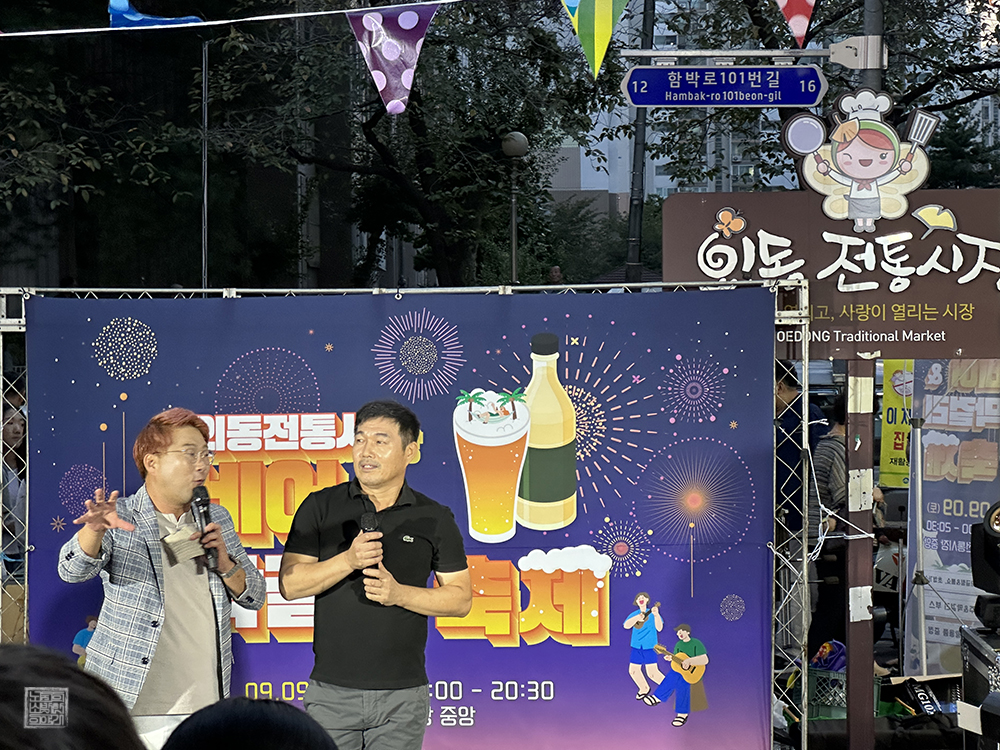 맥주와 막걸리를 받은 이후 시장에서 안주를 사거 먹을 수도 있지만, 맥주와 막걸리를 나눠주는 부스에서 순살 치킨과 몇 술에 곁들일 수 있는 안주도 함께 나눠주면서 많은 사람의 호응을 얻었다. 본격적으로 맥주와 막걸리를 나눠주기 시작한 저녁 6시부터 이미 사람들이 길게 줄을 늘어설 정도로 외동 시장은 오랜만에 사람으로 가득 채워졌다.