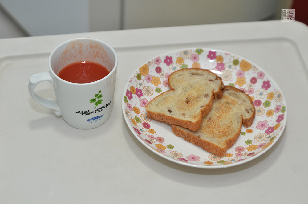 원래 사진을 찍을 때 빵과 함께 토마토 주스를 첫 잔으로 부어서 찍을 생각이었지만, 토마토 주스를 컵에 붓고 나서 식빵이 토스트기에서 익는 걸 기다리는 동안 무심코 주스를 마시고 말았다. 그만큼 아침에주스 유기농 토마토주스는 한번 맛을 본 사람들은 맛있다는 걸 인정할 뿐만 아니라 계속 마시고 싶은 그런 제품이었다.