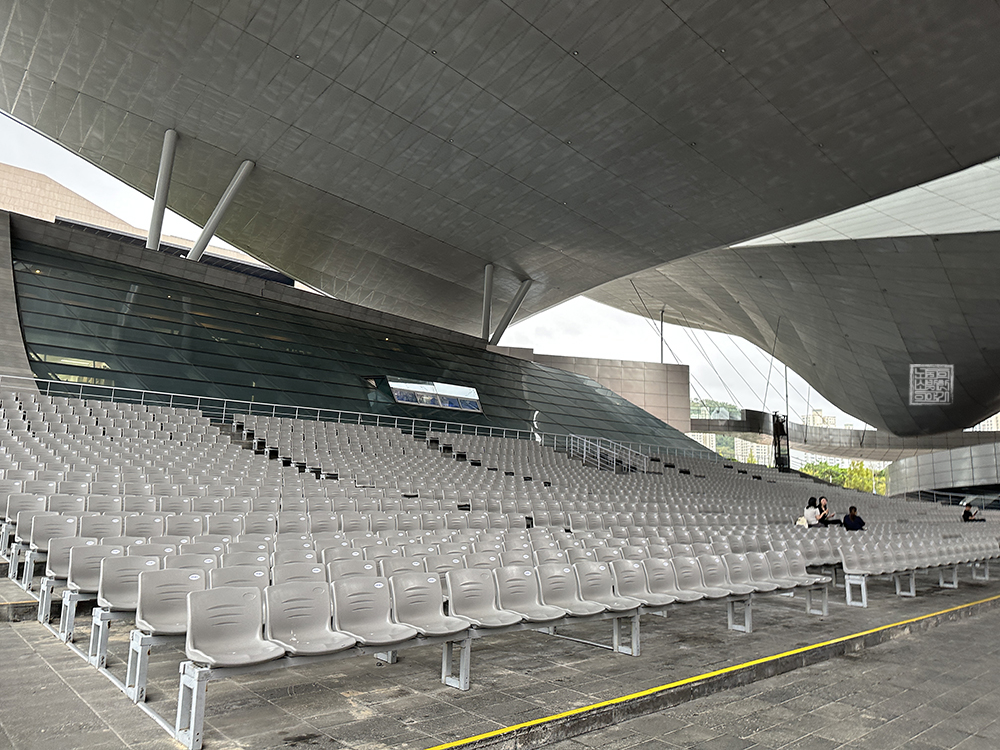 영화의 전당 광장이라고 말할 수 있는 야외극장은 규모가 상당히 크기 때문에 이곳만 둘러보려고 해도 제법 시간이 걸린다. 그리고 평평한 바닥을 자랑하고 있다 보니 스케이트 보드를 타는 사람이나 아이들이 킥보드를 타고 도는 모습도 쉽게 볼 수 있었고, 한쪽에서는 스마트폰을 삼각대에 세워두고 틱톡 영상을 찍는 모습도 볼 수 있었다.