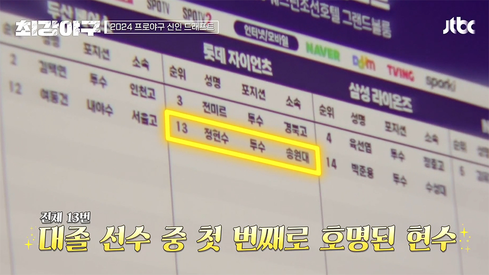 2024 프로야구 신인 드래프트에서 1라운드 호명이 끝난 이후 2라운드 호명이 시작되었을 때, <최강야구> 팬들은 "어? 진짜야? 2라운드에서 뽑힌다고!?"라며 놀랄 수밖에 없는 그 이름을 들었다. 바로, <최강야구>의 낭만 투수로 불리는 정현수가 롯데 자이언츠에 2라운드에서 대졸 선수 중 첫 번째로 호명된 것이다. 이야, 역시 정현수라고 할까?