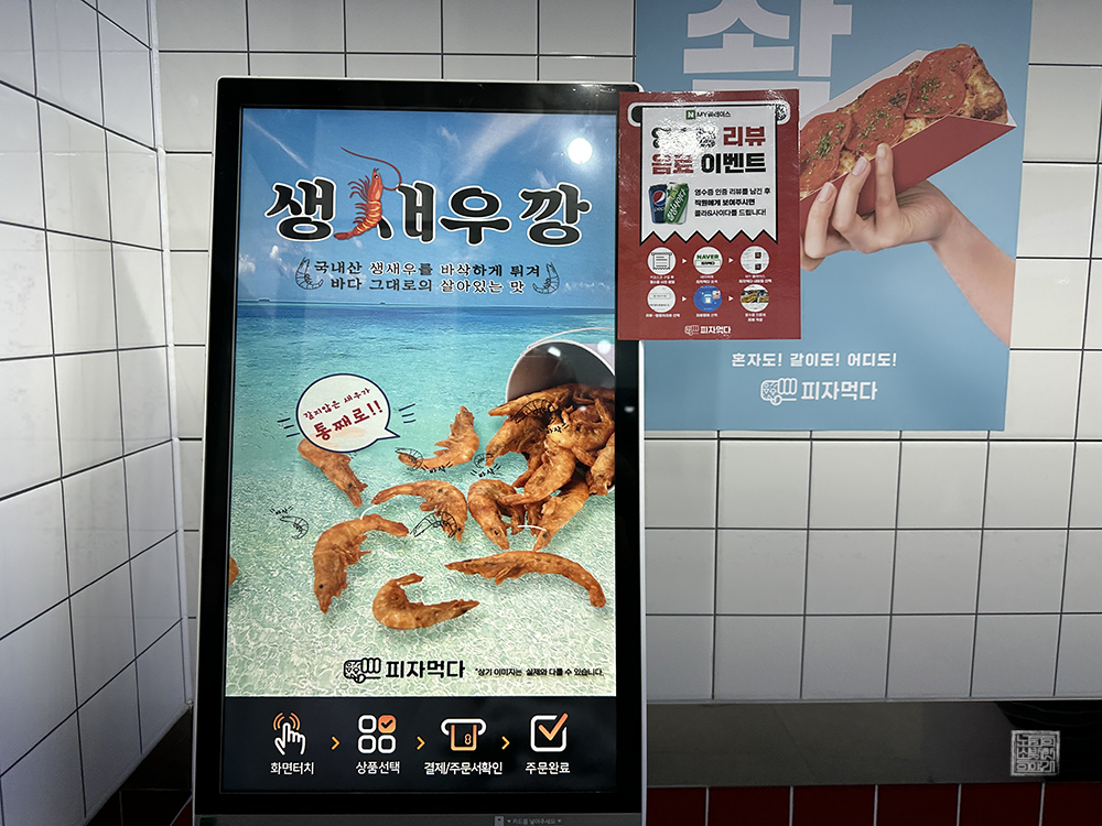 피자를 주문한다면 마르게리따피자를 한판 더 준다고 한 21일(목)을 맞아서 찾은 피자먹다 내외점은 이벤트 덕분인지 피자를 구매하기 위해 찾은 손님이 많았다. 이곳에서 피자를 주문하는 방법은 입구에 놓여 있는 포스기를 이용하는 것으로. 포스기를 본다면 판매하는 판매하는 피자의 종류가 총 20가지라 선택의 폭이 무척 넓었다.