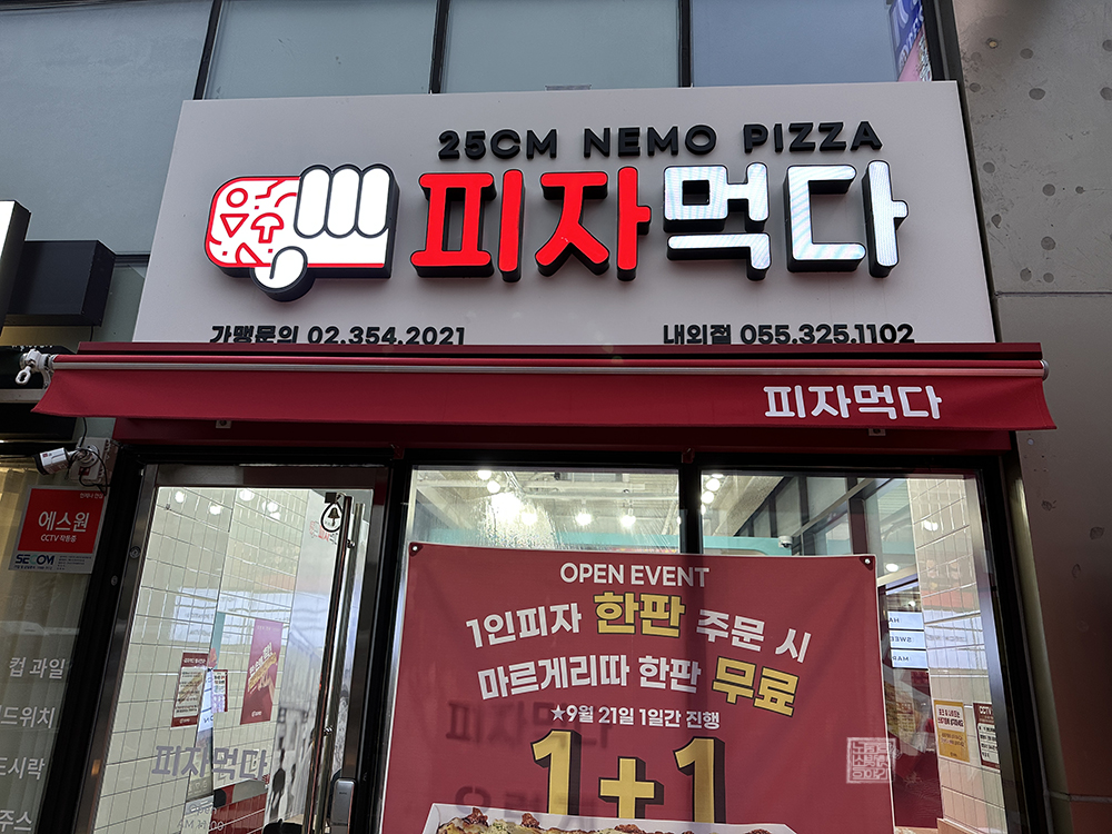 바로, '피자먹다'라는 이름의 1인 피자 프랜차이즈 지점으로, 자전거를 타고 5분 거리에 피자 먹다 내외점이 문을 열면서 지난 21일(목)을 맞아 가게를 찾아보았다.