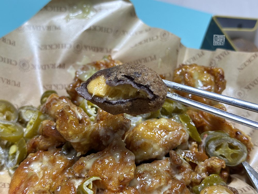 요즘 치킨 가격이 워낙 비싸다 보니 푸라닭의 순살 고추마요 치킨을 좋아해도 한 달에 한두 번 정도 먹을까 말까다. 치킨을 주문할 때도 항상 치킨 하나만 주문하고, 사이드 메뉴를 추가하면 가격이 너무 비싸지기 때문에 추가를 하지 않았다. 그래서 이번에 처음 푸라닭의 블랙 치즈볼을 먹어 보았는데… 와 이것도 쫀득한 게 정말 맛있었다.