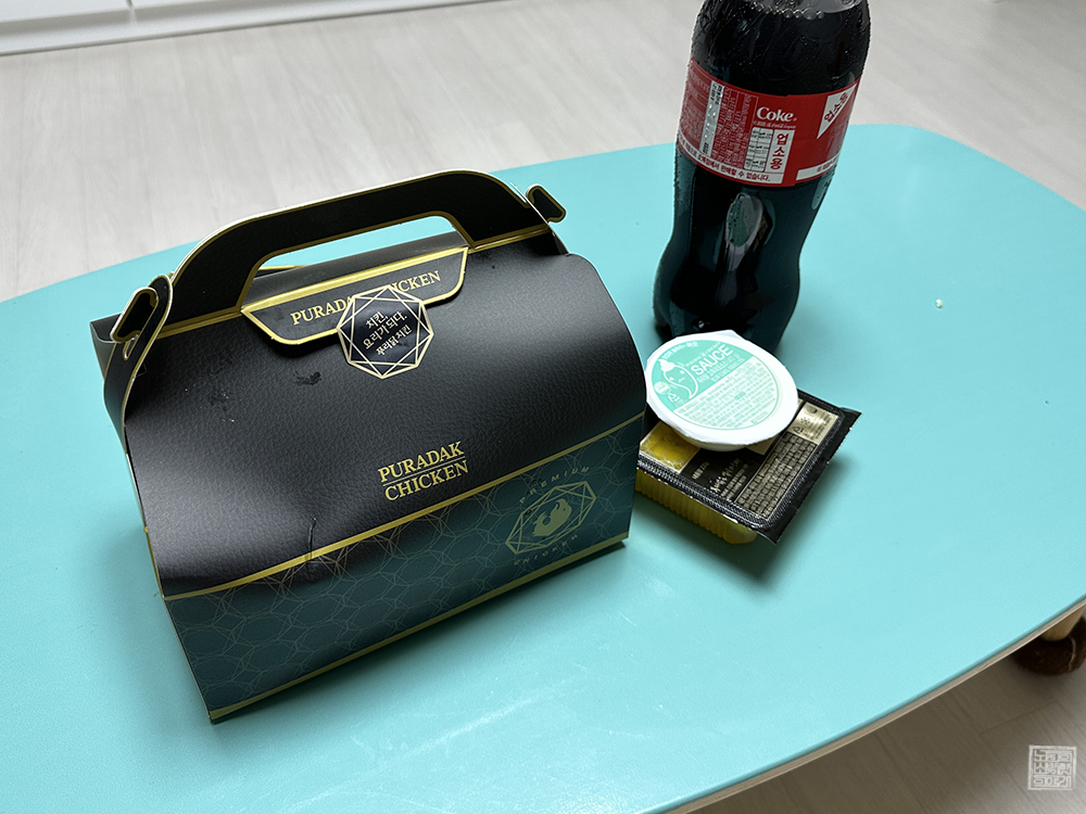 배달 주문을 했을 때는 45분 내외로 도착할 예정이라고 했지만, 배달은 30분 만에 이루어지면서 빠르게 푸라닭의 순살 고추마요 치킨을 받아볼 수 있었다. 당시 기프티콘은 치킨만 있는 게 아니라 블랙 치즈볼과 콜라를 함께 받아볼 수 있었는데, 메인은 역시 치킨이다. 푸라닭의 순살 치킨은 100% 다릿살을 이용하기에 맛있게 먹을 수 있다.