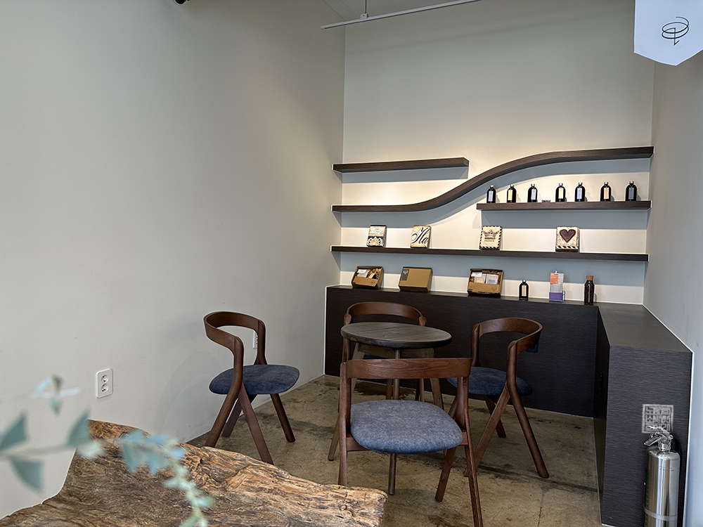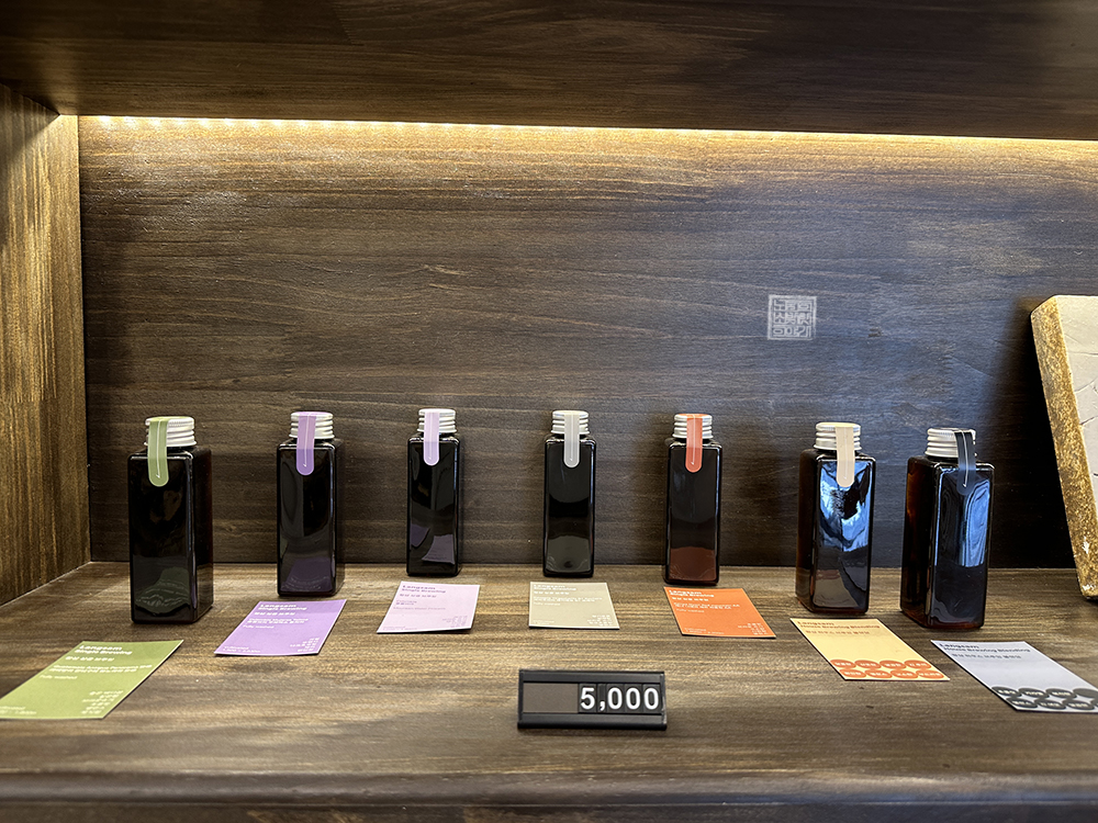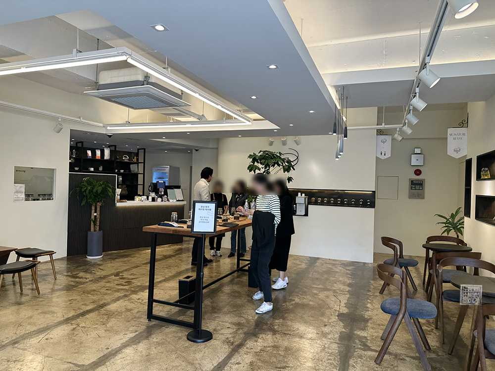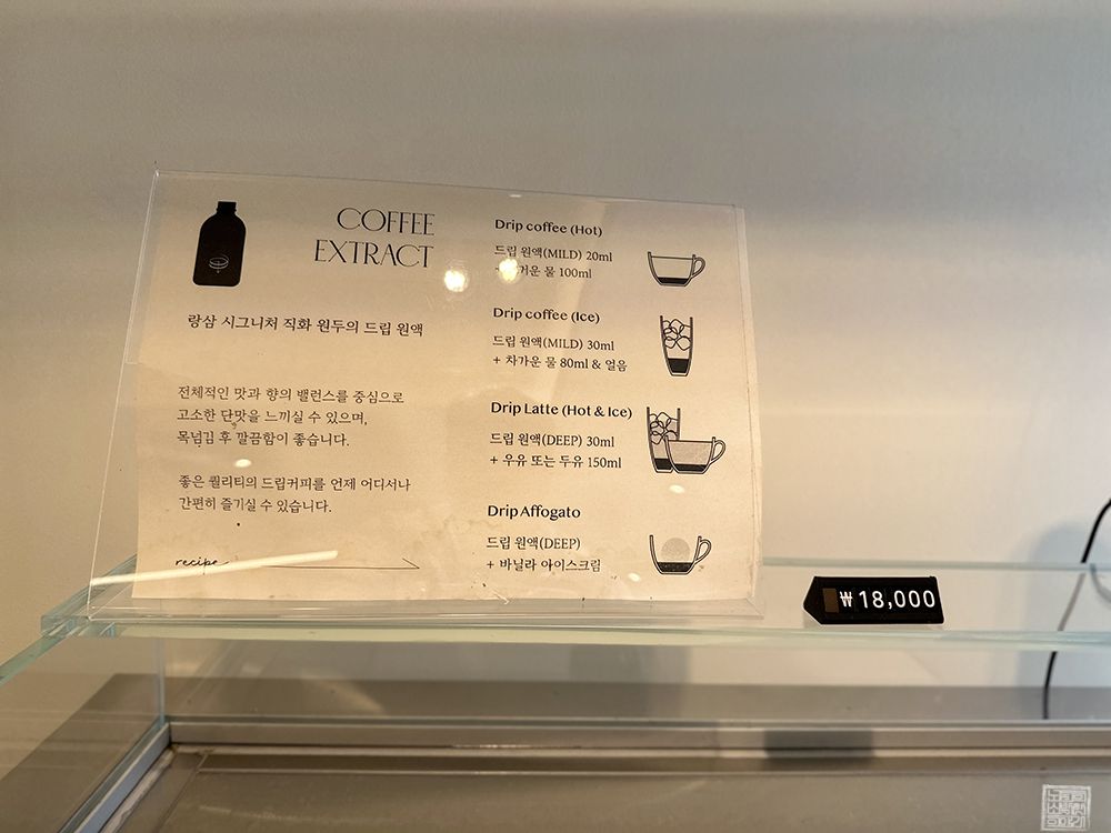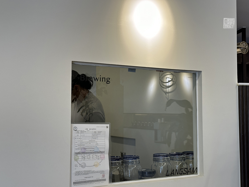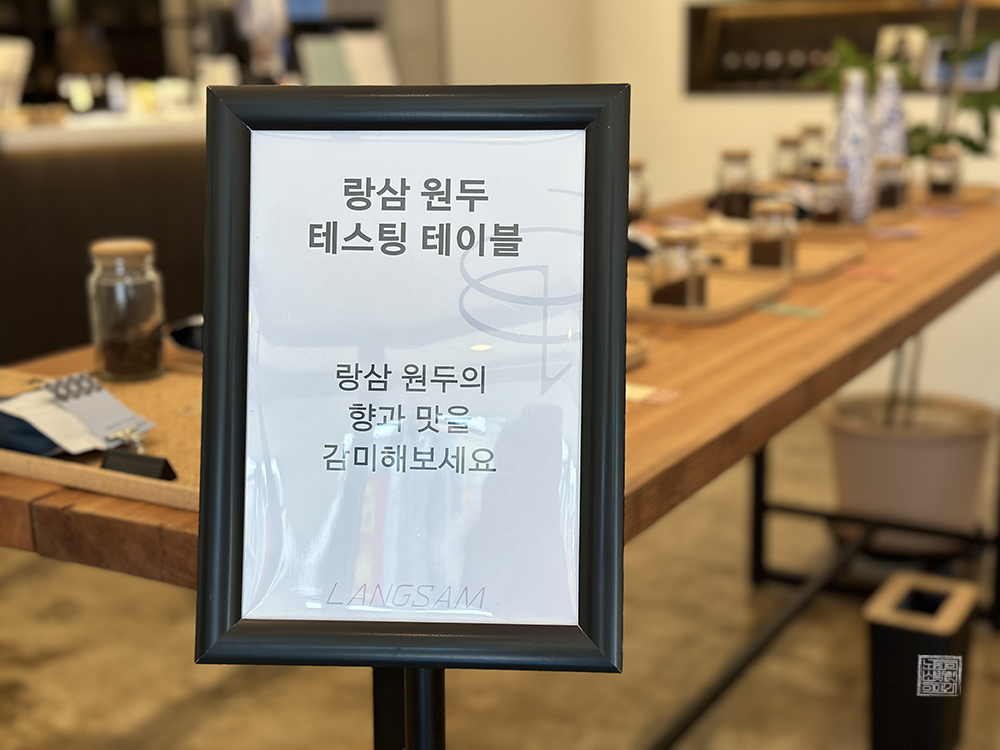주문한 말차라떼가 나올 때까지 나는 카페 랑삼을 천천히 둘러보았는데, 카페 랑삼의 중앙 테이블에는 직접 내린 원두커피를 시음해 볼 수 있도록 되어 있었다. 평소 원두커피에 진심인 사람들은 이곳에서 시음과 시향을 함께 해볼 수 있는 원두커피가 무척 마음에 들 것으로 생각한다. 당연히 커피 원두 드립 원액도 개별로 구매할 수 있다.
