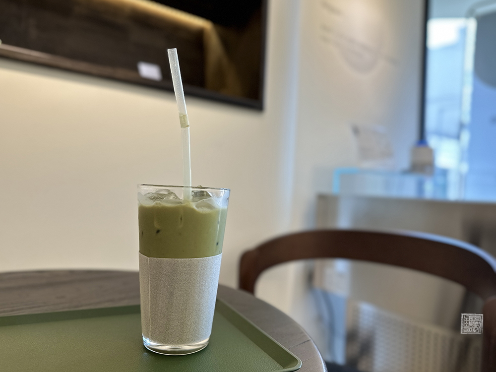 음료를 주문하고 그렇게 천천히 카페 랑삼을 둘러보고 있었더니 얼마 지나지 않아 주문한 말차 라떼가 나왔다. 말차 라떼는 아이스로 제공되기 때문에 사진에서 볼 수 있듯이 얼음이 들어간 상태로 받아볼 수 있는데, 말차 라떼에 들어간 말차 가루도 좋은 말차 가루라는 걸 확실히 알 수 있을 정도로 말차의 향과 맛이 굉장히 깊었다.