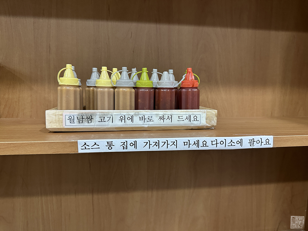 "소스 통 집에 가져가지 마세요. 다이소에 팔아요."라고 적힌 경고 문구를 보고 무심코 웃음이 새어나왔다. 확실히 소스 통이 아기자기해서 귀여운 데다가 맛있는 소스가 채워져 있다 보니 가게를 찾은 사람들이 종종 훔쳐 갔던 것 같다. 얼마나 자주 소스 통이 없어졌으면 "집에 가져가지 마세요. 다이소에 팔아요."라고 적어둔 걸까? (웃음)