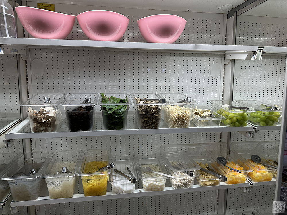 가야 편백 샤브샤브 무한리필은 무한리필 점이라고 해도 M 갈비처럼 1인분 계산을 한 이후 가게에서 이용할 수 있는 샤브샤브 재료들을 이용해서 먹는 시스템이 아니다. 정확히 특정 메뉴를 주문해야 셀프 코너에서 이용할 수 있는 샤브샤브의 여러 재료를 무제한으로 이용할 수 있는데, 편백찜 샤브샤브이다 보기 가격이 좀 있는 편이다.