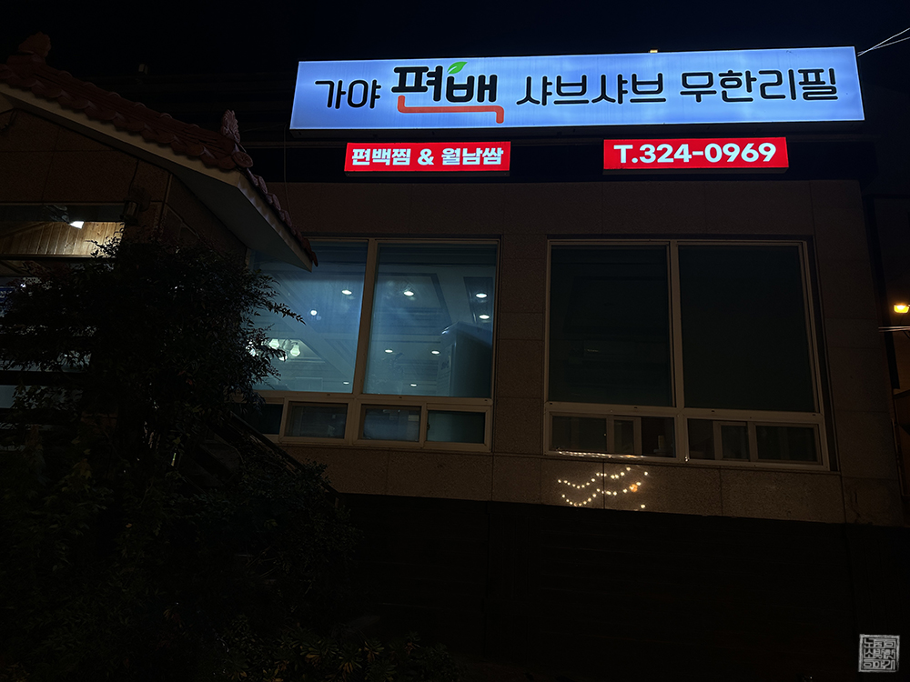 요즘 날씨가 너무 추워지다 보니 자연스레 따뜻한 국물과 함께 먹을 수 있는 음식을 찾게 된다. 얼마 전에 나는 어머니와 함께 오랜만에 샤브샤브를 먹기 위해서 가야 편백 샤브샤브 무한리필을 찾았는데, 가게에 들어갔더니 연말이 가깝기도 하고 날씨가 추워진 덕분인지 많은 사람이 가게를 찾아 샤브샤브를 먹고 있었다.