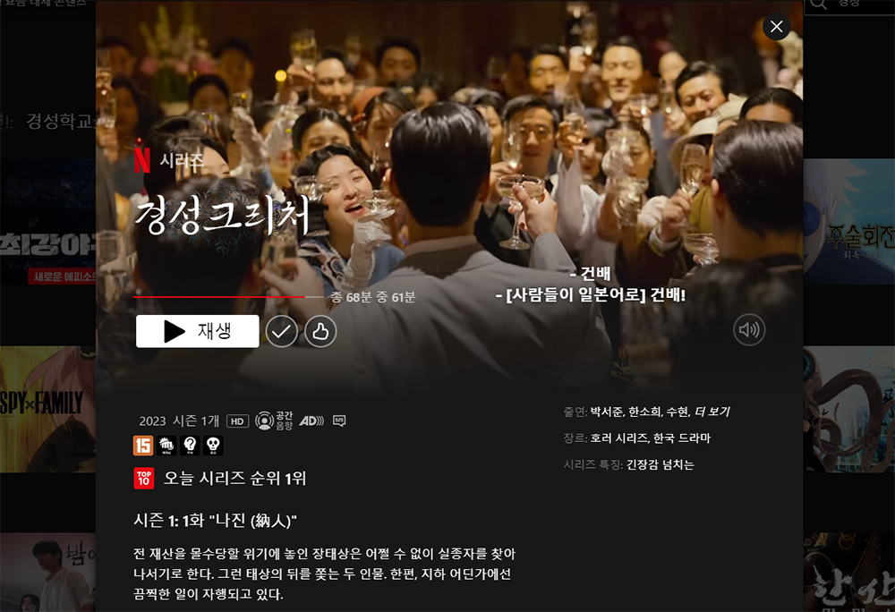 한국의 드라마와 영화에서 일본의 만행을 소재로 한 작품은 '실패하지 않는 흥행작'의 필수 조건 중 하나로 붙는다. 이번에 넷플릭스를 통해 공개된 <경성 크리처>라는 작품은 과거 제2차 세계 대전을 치르는 동안 일본이 조선과 중국 등 침략한 나라에서 벌인 고문과 끔찍한 생체 실험을 소재로 살아남고자 하는 이의 모습을 그렸다.