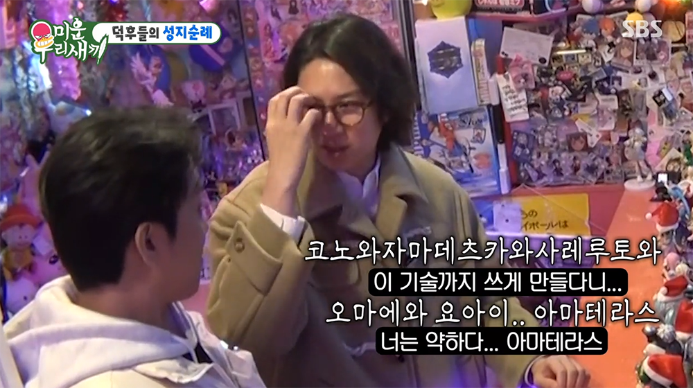 이곳을 찾은 김희철이 최애캐 중 하나인 니코 피규어를 가지고 "니코 니코니~"라고 말하는 모습도 웃었고, 덕후이기는 해도 애니메이션과 만화 쪽이 아니라 게임 쪽인 은지원이 보여주는 반응이 재밌었다. 아마 <미운 우리 새끼 376회>를 보면서 해당 장소를 처음 알게 된 덕후들은 한 번쯤 저 장소를 가보고 싶어지지 않았을까?
