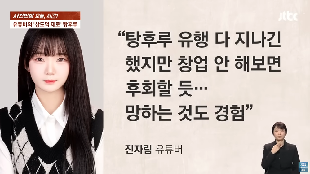 진자림 탕후루 상도덕 논란 망하는 것도 경험이라고
