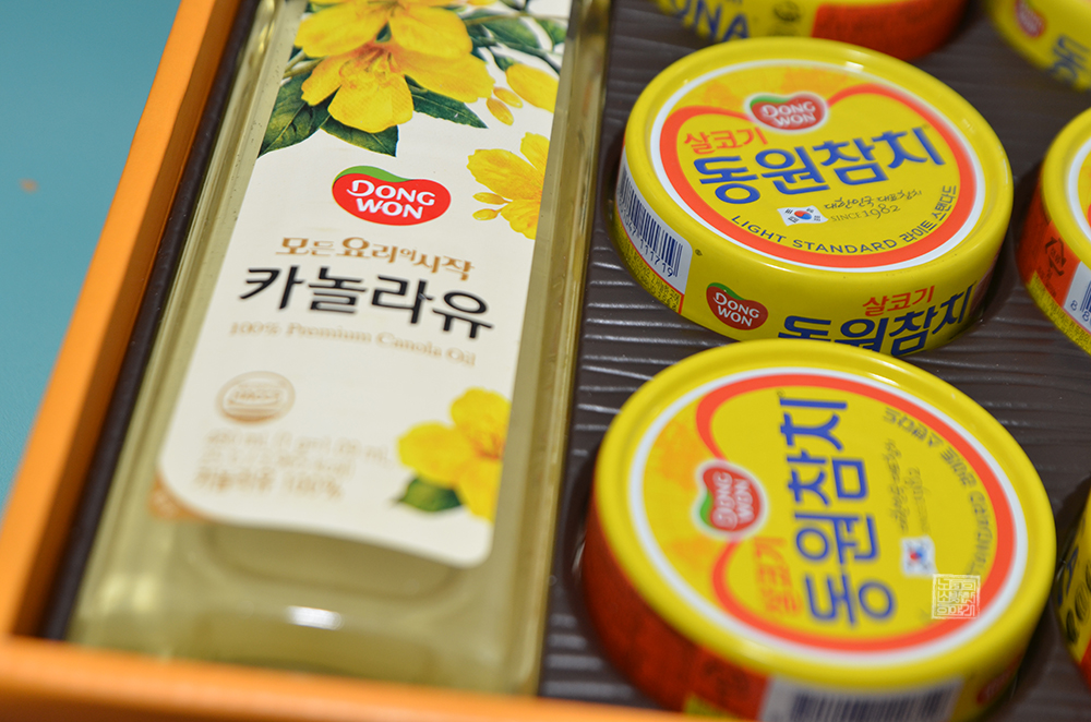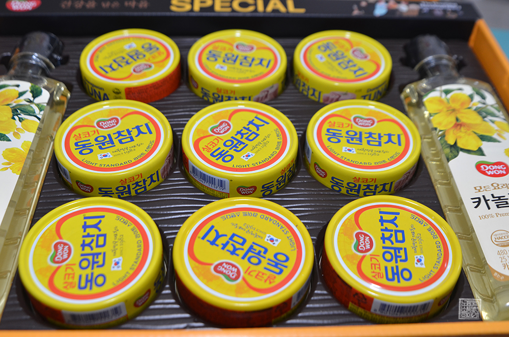 해당 선물 세트 동원 스페셜 47호는 어머니가 재무로 계시는 체육회에서 도착한 설날 선물 세트로, 동원 스페셜 47호는 위 사진에서 볼 수 있듯이 박스가 부직포 가방으로 포장되어 있다. 그리고 부직포 가방 안에 들어 있는 선물 세트에는 동원참치 라이트 스탠다드(90g) 제품 9개와 함께 카놀라유 450ml 제품 2개가 들어가 있었다.