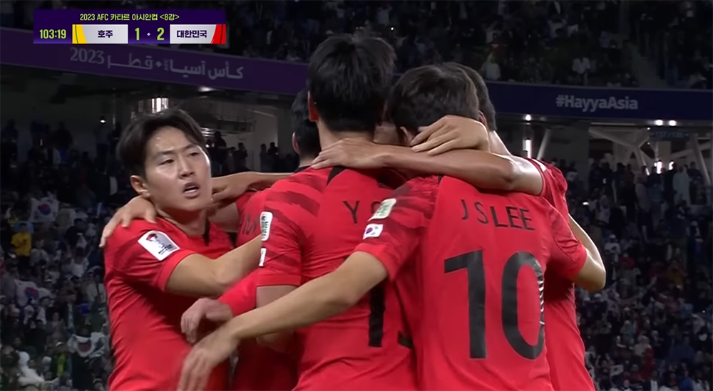 한국 시간으로 토요일 00:30분에 막이 오른 2023 카타르 아시안컵 8강 전에서 한국은 이번 대회 최저 실점을 자랑하는 호주와 맞붙게 되었다. 호주는 높은 신장을 바탕으로 한국이 호주 진영에서 올리는 크로스를 속속 방어할 뿐만 아니라 빠른 역습과 적극적인 압박으로 한국을 위협했다. 8강 전에서 선취골은 호주에서 먼저 나왔다.