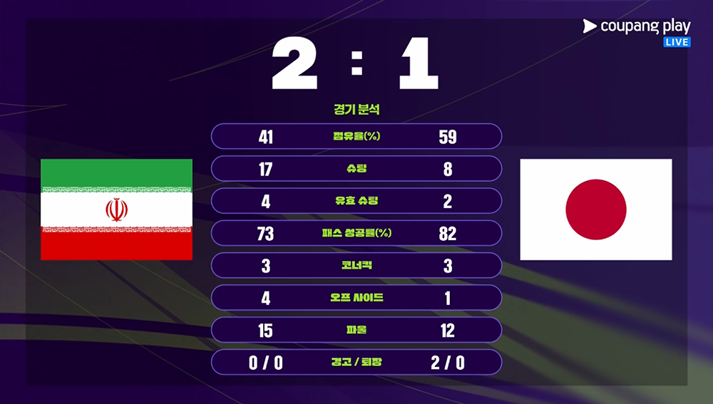 일본은 연장전을 대비해 준비하던 카드를 곧바로 사용하며 전원 공격 태세로 바꾸었고, 이란도 연장전을 대비해 준비하던 카드를 사용하며 전원 수비 태세로 바꾸었다. 누가 되더라도 딱 2분. 그 2분 안에 이 승부가 결정이 지어지기 때문에 누구도 방심할 수가 없었다. 한국과 호주도 그랬지만, 일본과 이란도 마지막까지 방심할 수 없었다.