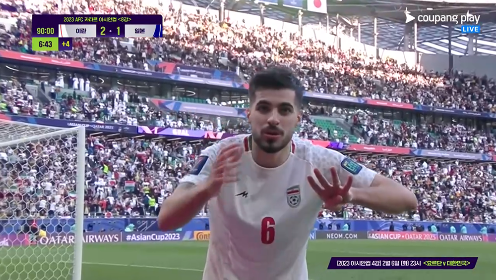 한국과 마찬가지로 패널티킥을 얻은 사람과 키커로 나선 사람이 달랐던 건데, 승부에 있어서 가장 중요한 기회이다 보니 가장 자신 있는 사람이 차는 것이 맞았다. 만약 일본 골키퍼가 선방을 날린다면 어떻게 될지 모르는 팽팽한 긴장감 속에서 이란의 주장 알리레자 자한바크시는 차분하게 골을 넣으면서 시합의 스코어를 2:1로 뒤바꾸었다.