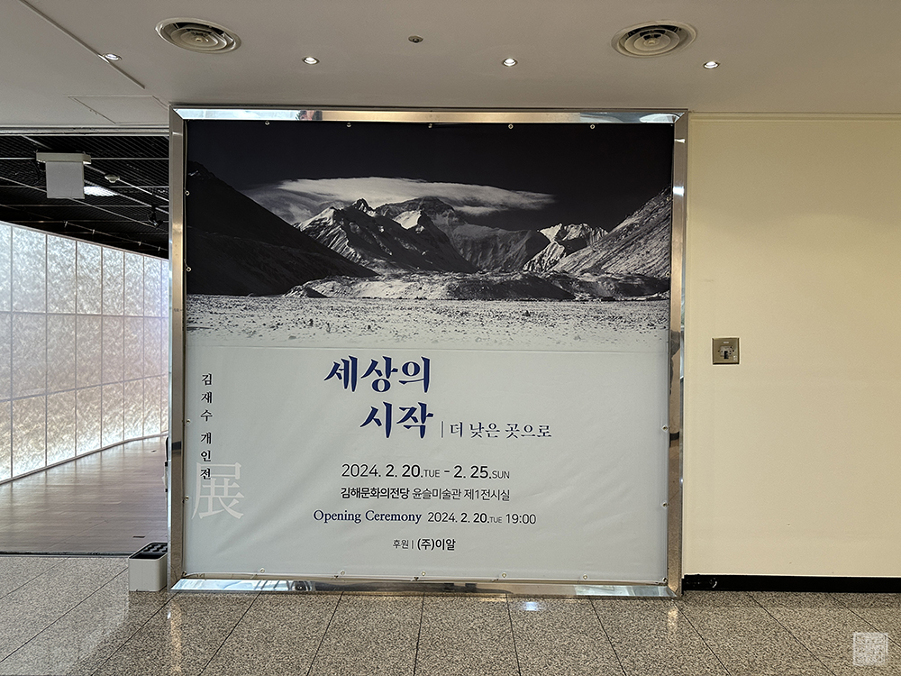 현재 김해 문화의 전당 윤슬미술관 제1전시실에서 일주일 동안 볼 수 있는 특별한 전시회가 열리고 있다는 이야기를 듣고 오랜만에 김해 문화의 전당을 찾았다. 윤슬미술관 제1전시실에서 열리는 전시는 김재수 개인전으로, 이번 개인전을 연 '김재수'라는 인물은 꾸준히 등반가로 활동하며 히말라야를 정복한 김해 출신의 등반 대장이었다.