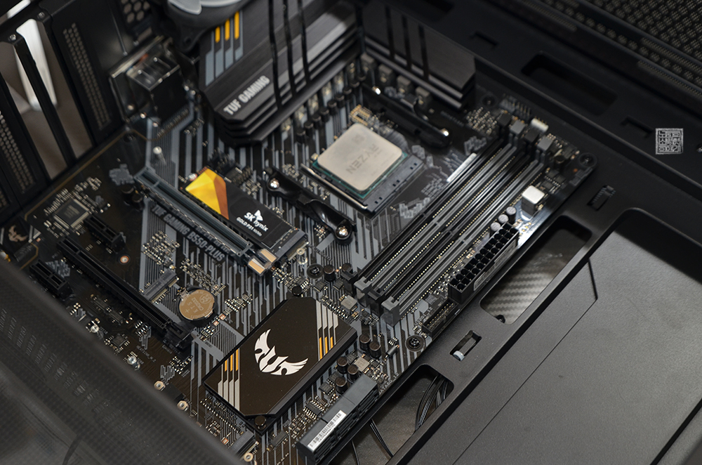 방열판과 함께 M2 SK하이닉스 Gold P31 SSD 1TB 모델을 장착한 모습은 위와 같다. 방열판을 덮기 전에 미리 메인보드 나사를 체결해야 한다는 단점이 있었고, 방열판이 메인보드를 체결하는 나사 부분을 가리다 보니 메인보드를 분해해야 할 때는 SSD 방열판부터 제거를 해줘야 했다. 이게 좀 번거롭기는 해도 겉보기에는 깔끔해서 좋았다.