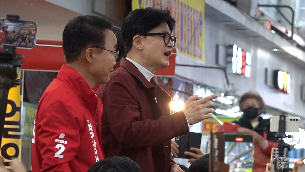 지난 목요일(14일) 국민의힘 한동훈 비대위원장은 낙동강 벨트 중 한 곳인 김해를 찾아 시민들에게 지지를 호소하는 지원 유세에 나섰다. 당일 한동훈 비대위원장은 오후 3시경에 김해의 한 빵집에서 김해의 학부모들과 짧은 간담회를 가지면서 언론과 인터뷰를 했고, 인터뷰를 마친 이후에는 김해 외동 전통 시장을 찾아 시민들을 만났다.