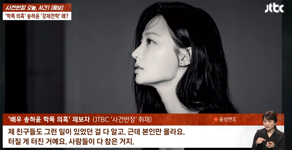 배우 송하윤 학폭 의혹 강제 전학은 사실로 드러나
