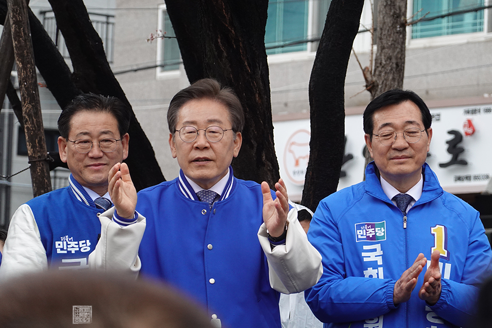 김해 찾은 이재명 대표, 김정호와 민홍철 후보 지원 유세