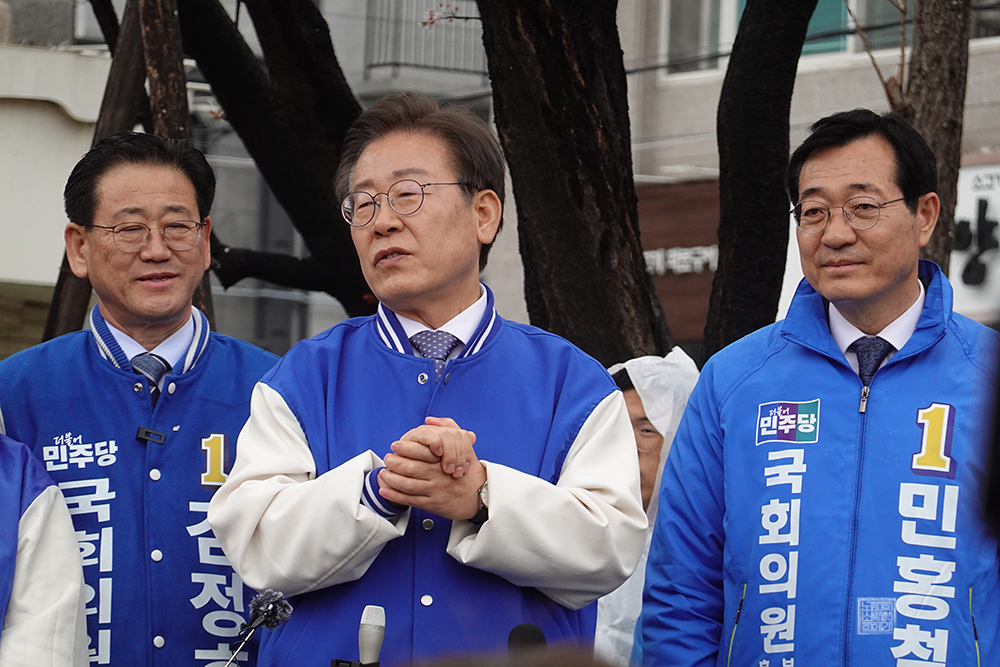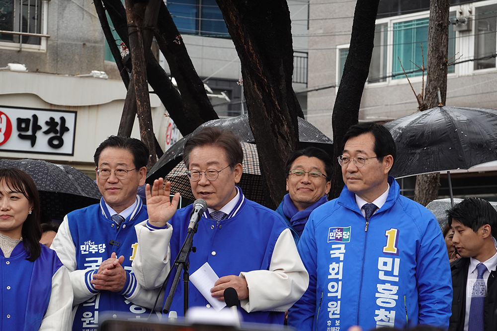 김해 찾은 이재명 대표, 김정호와 민홍철 후보 지원 유세