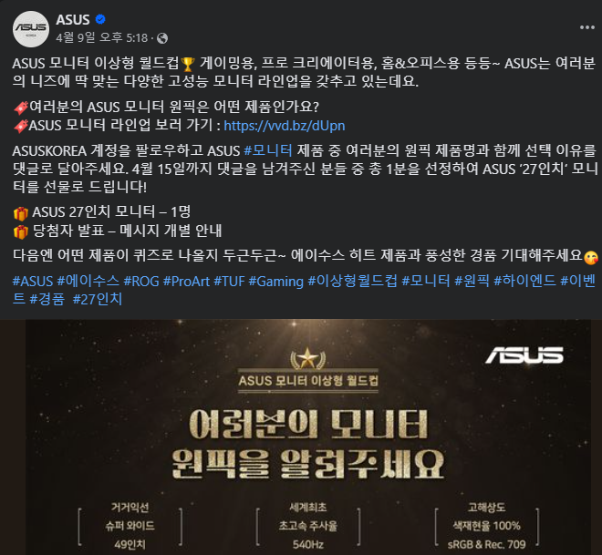 확실히 이벤트 페이지를 들어가 보니 '27인치 모니터'를 선물로 준다고 강조되어 있지, 신형 모니터를 준다는 이야기는 어디에도 없었다. 덕분에 좋은 모니터를 받을 수 있을 것으로 생각했던 기대는 어긋나고 말았지만, 그래도 ASUS에서 생산한 27인치 모니터(시중가 약 14만 원)를 공짜로 받은 셈이라 기분은 좋았다.