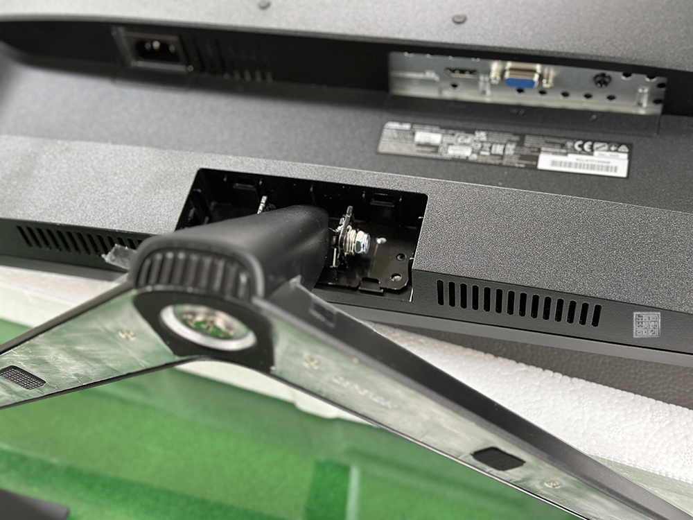 ASUS VY279HE 모니터는 높낮이 조절이 되는 모니터가 아니기 때문에 박스에 들어 있던 모니터 받침대를 모니터와 연결해 주면 조립은 끝이다. 모니터 받침대와 기둥은 홈에 맞춘 이후 받침대 하단의 나사를 돌려주면 되고, 받침대 겸 기둥을 모니터와 연결할 때는 홈에 맞춘 이후 동봉된 나사를 돌려주면 깔끔하게 조립할 수 있다.