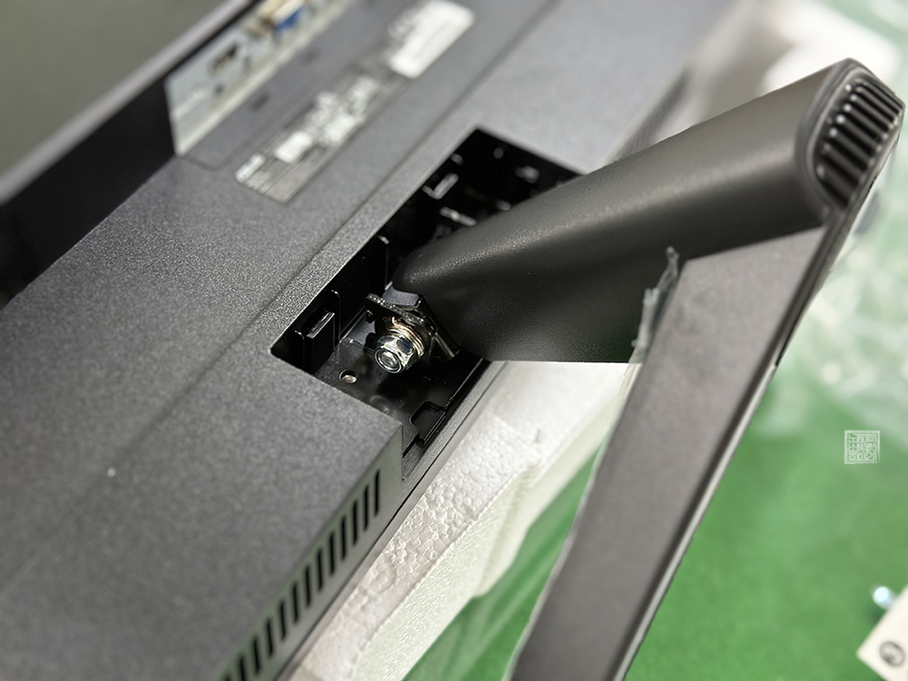 ASUS VY279HE 모니터는 높낮이 조절이 되는 모니터가 아니기 때문에 박스에 들어 있던 모니터 받침대를 모니터와 연결해 주면 조립은 끝이다. 모니터 받침대와 기둥은 홈에 맞춘 이후 받침대 하단의 나사를 돌려주면 되고, 받침대 겸 기둥을 모니터와 연결할 때는 홈에 맞춘 이후 동봉된 나사를 돌려주면 깔끔하게 조립할 수 있다.