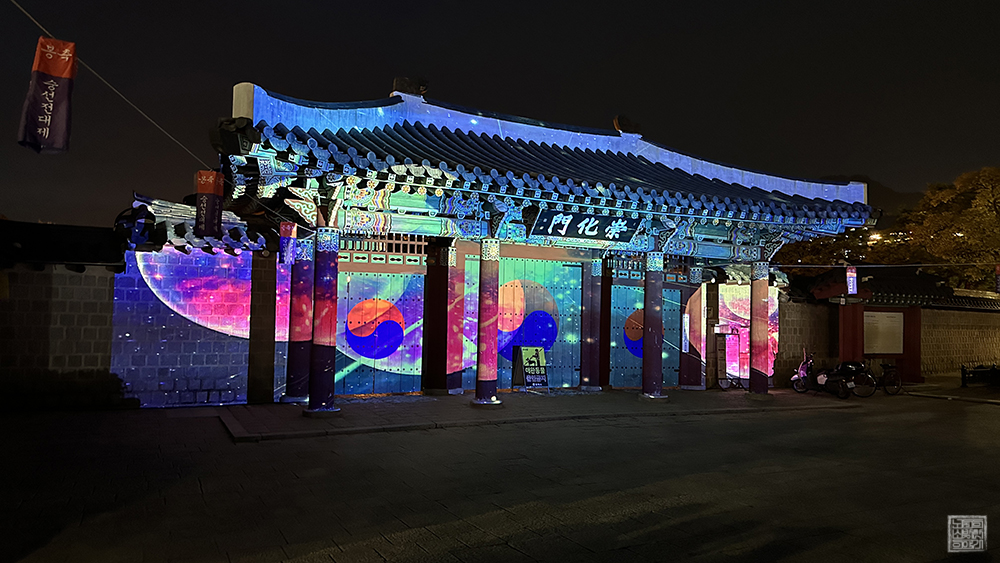 그렇게 간단히 수로왕릉 내부를 돌아보고 나왔을 때 때마침 금요일부터 일요일까지 3일 동안 진행된 미디어 파사드쇼의 막이 오를 준비를 하고 있었다. 미디어 파사드쇼는 건물의 외벽을 스크린 삼아서 빔 프로젝터로 다양한 미디어 아트를 선보이는 쇼로, 김해 수로왕릉 정문을 스크린으로 활용한 쇼는 대단히 이색적이고 매력적이었다.