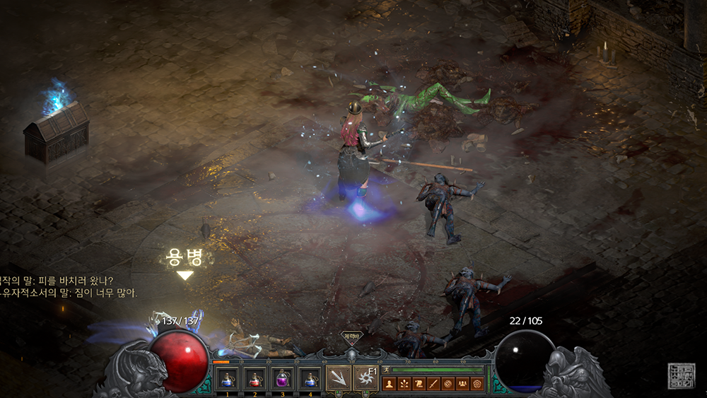 이는 빠르게 퀘스트를 공략하고자 한다면 어쩔 수 없는 일이기 때문에 일단은 도전해보고 있다. 만약 내가 너무 컨트롤이 힘들다고 생각될 경우에는 일부 스타일을 시간이 걸리더라도 조금 바꾸어서 진행해 볼 생각이다. <디아블로2 레저렉션>은 소위 말하는 '정석 플레이'가 있기도 하지만, 각자 변형 플레이를 하는 게 매력인 게임이니까.