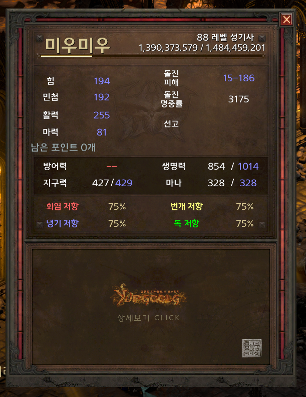 캐릭터 이름이 '미우미우'인 이유는 내가 브랜드 '미우미우'를 좋아해서 그런 게 아니라 유튜브에서 <디아블로2> 맨땅 라이브 송출을 하는 채널의 아이디가 '디아 미우'였기 때문에 '미우미우'로 캐릭터 이름을 정했다. 현재 레벨 88을 찍은 팔라딘(성기사)의 무기는 위 사진에서 볼 수 있는 졸업 룬워드 무기 중 하나인 참나무의 심장이다.