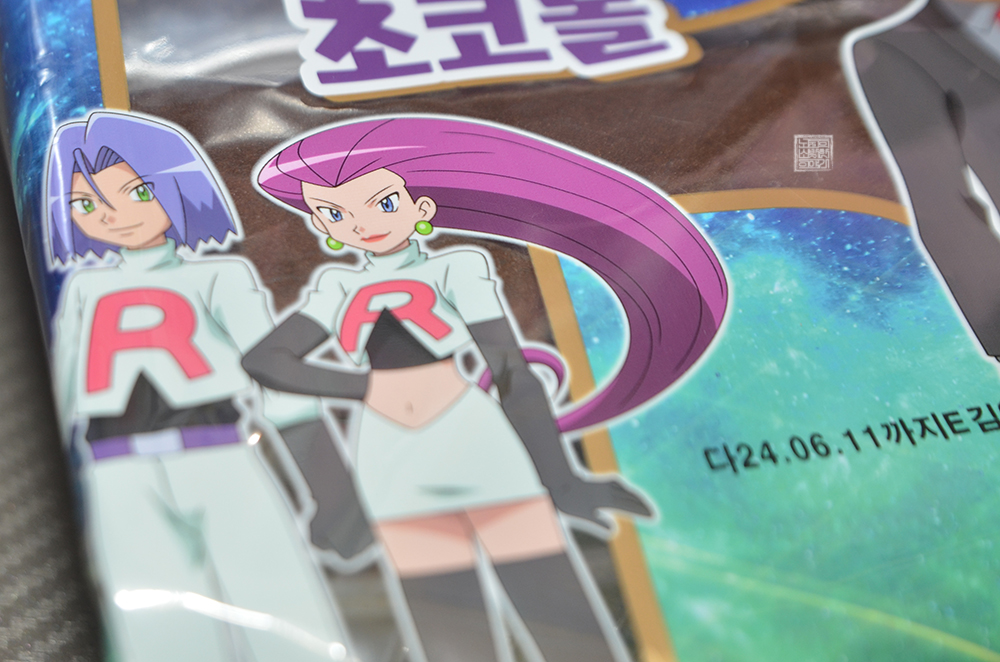 거대해진 로켓단 초코롤은 크기가 거대해진 만큼 포장지를 장식한 인물도 로이와 로사 두 사람만이 아니라 로켓단을 상징하는 인물인 비주기의 모습도 볼 수 있다. 비주기와 그가 기르는 포켓몬 중 하나인 냐옹이의 진화 형태인 페르시온의 모습이 잘 그려져 있는데, 오랜만에 1세대 포켓몬스터의 악역(?)들을 모아서 보니 꽤 반가웠다.