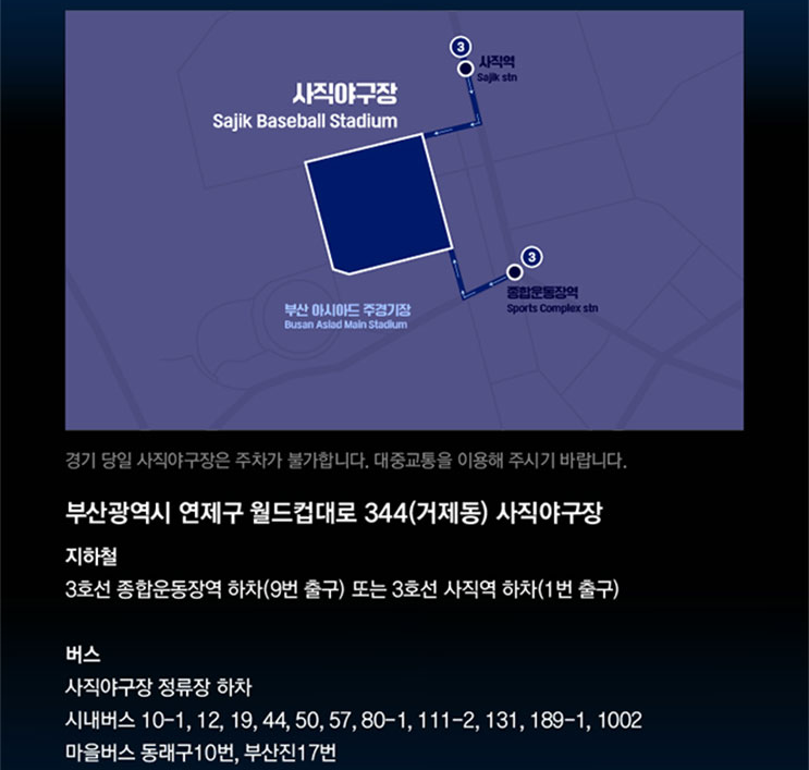 약 1만 6천 명을 수용 가능한 고척돔과 달리 사직 야구장은 약 2만 4천 명을 수용 가능하기 때문에 좌석수는 훨씬 많다. 하지만 협찬사의 좌석과 방송사의 좌석을 포함한 초대석이 어느 정도 할당되어 있다는 걸 생각한다면 예매할 수 있는 숫자는 훨씬 적다고 생각한다. 무엇보다 사직구장은 오래된 야구장인 만큼 일부 좌석은 좋지 않다.