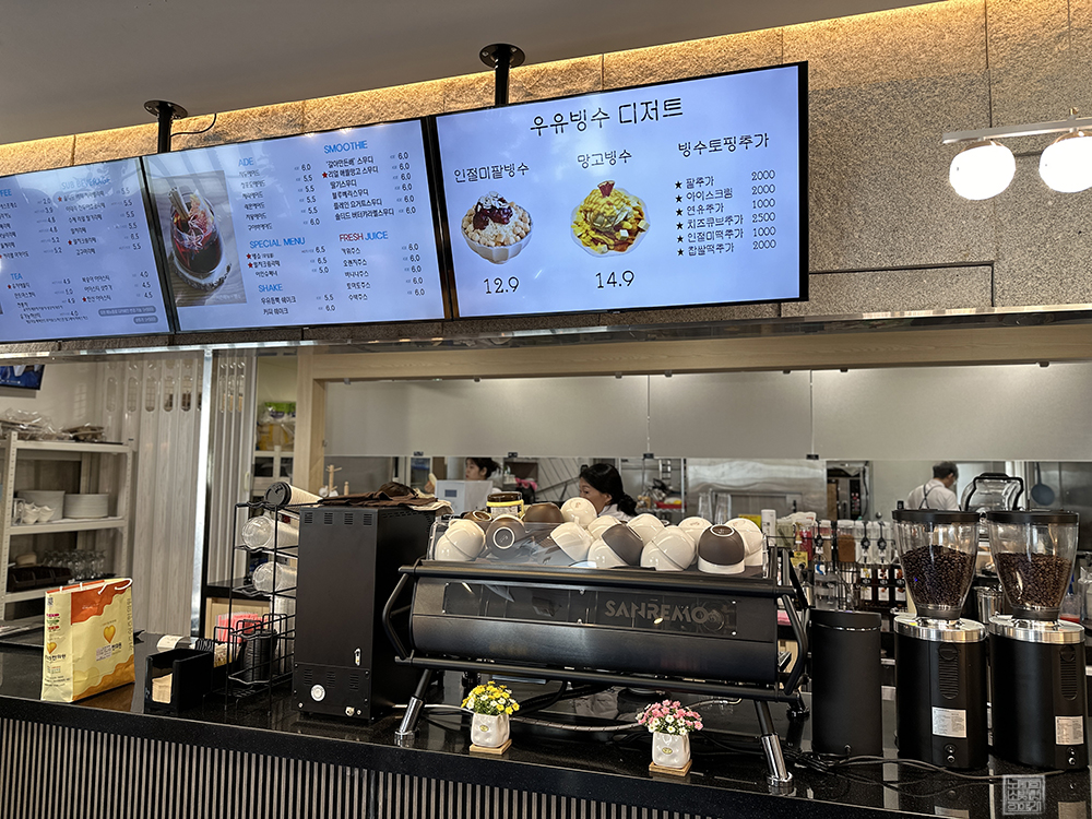 '오가네 두 번째 이야기'라는 수식어가 붙은 카페 레이크에서 판매하는 빙수는 인절미 팥빙수와 망고 빙수 두 가지다. 가게 입구에 붙은 배너를 통해 볼 수 있는 이미지와 카페 카운터에서 볼 수 있는 이미지를 본다면 상당히 빙수가 맛있어 보인다. 역시 여름에는 자연스럽게 빙수를 찾게 되는 게 사람의 심리라고 생각한다. (웃음)