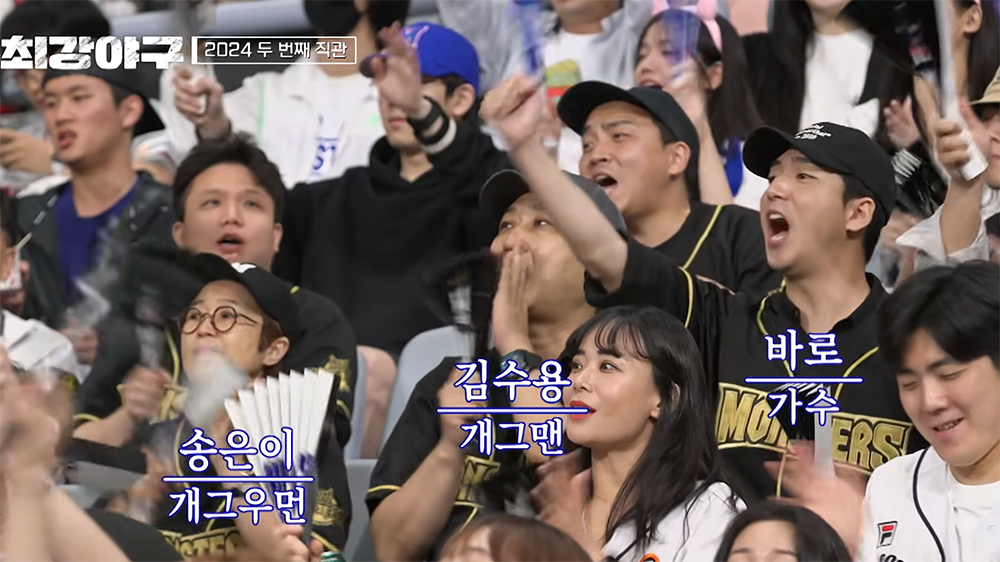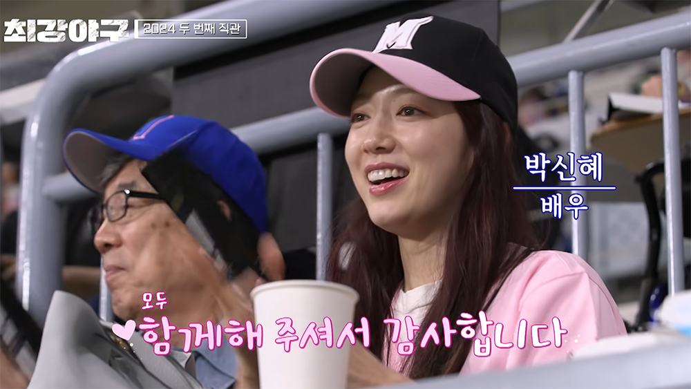 그렇게 시즌 두 번째 직관 경기에서는 징크스를 지키기 위해 노력하는 선수들의 모습도 즐거웠지만, <최강야구>를 직관 경기를 직접 보기 위해서 경기장을 찾은 여러 연예인의 모습도 볼 수 있었다. 이번에 카메라에 잡힌 연예인들은 소진, 윤박, 송은이, 김수용, 바로, 박신혜 등이 있었다. 참… 이 프로그램은 큰 사랑을 받는 듯하다.
