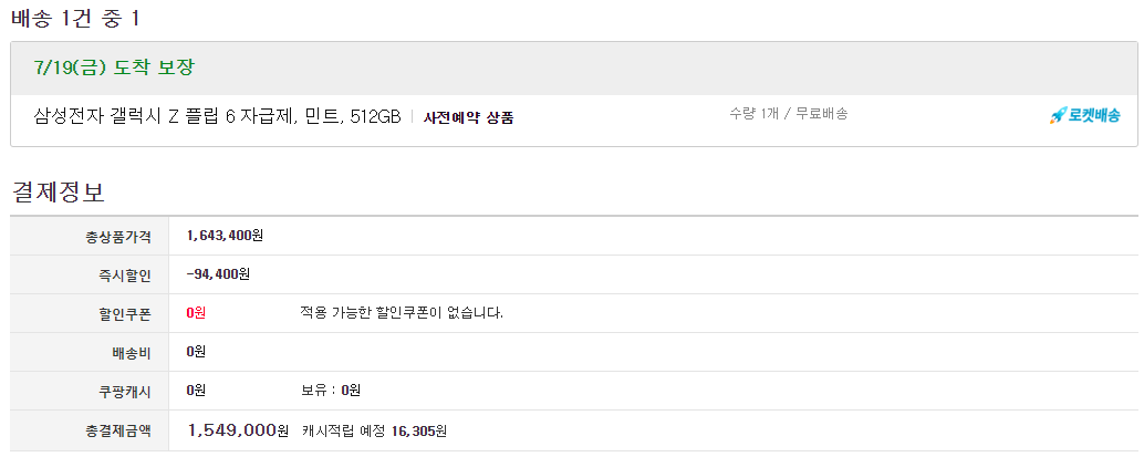 갤럭시 Z 플립6 쿠팡 즉시 할인 5% 삼성카드 결제 무이자 혜택 정리