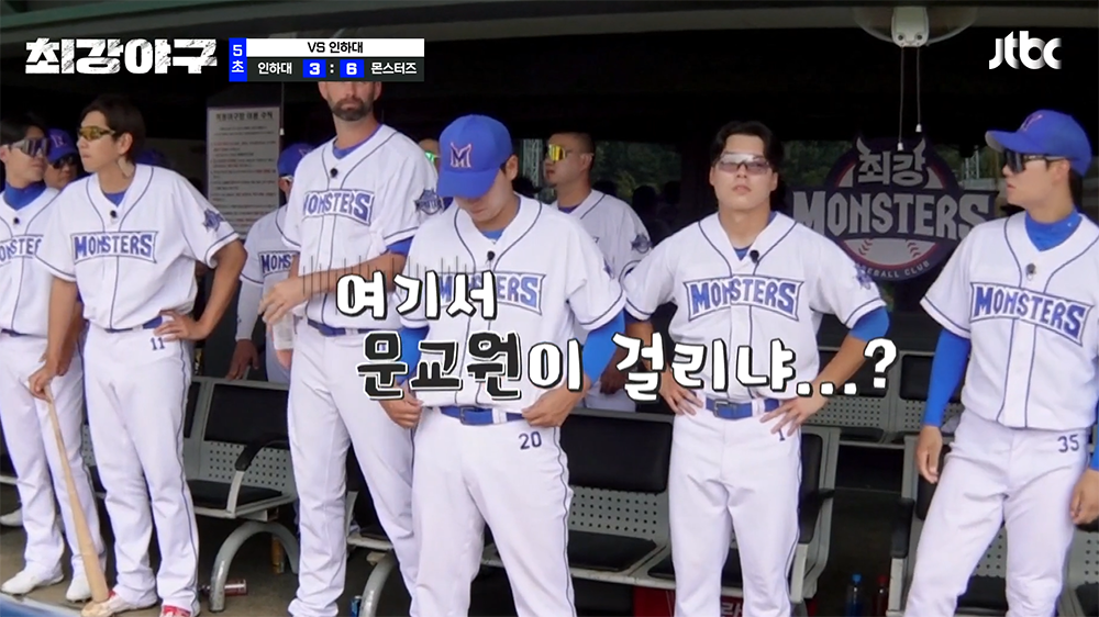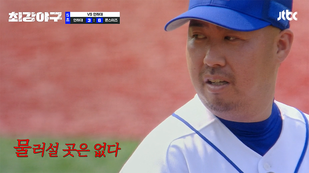 유희관이 선발 마운드에 오른 <최강야구 90회>에서 인하대는 처음부터 선취점을 가져 가면서 몬스터즈와 마찬가지로 대학 리그에서 전승을 이어가는 기세를 보여주었다. 하지만 몬스터즈는 1점은 사소한 점수라는 듯이 곧바로 점수를 만회할 뿐만 아니라 점수 차를 5점까지 벌리면서 스테이지 스윕을 위한 궤도에 오르는 듯했다.