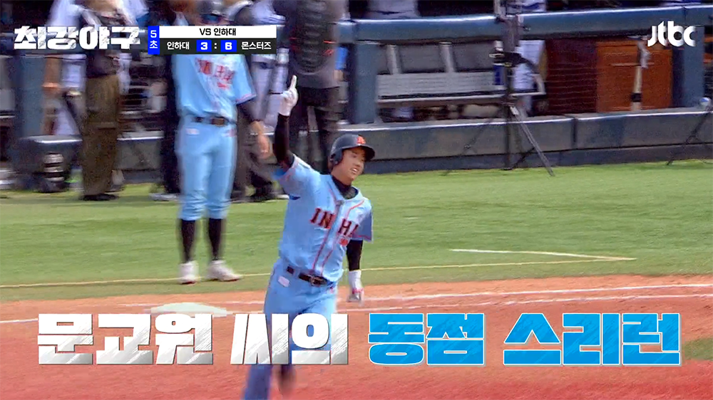 최강야구 인하대 전 문교원 씨의 3점 홈런으로 스테이지 스윕 위기