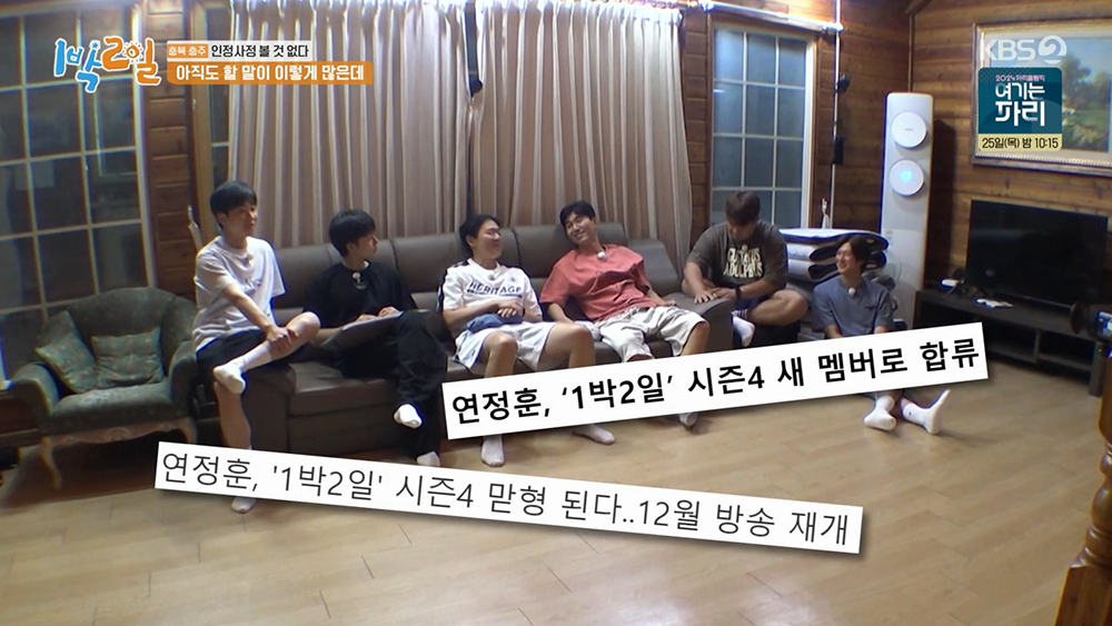<1박 2일 시즌4>를 이끄는 멤버로 합류했던 나인우와 연정훈 두 사람이 지난 방송을 끝으로 <1박 2일>에서 하차하게 되었다. 두 사람에게 어떤 문제가 생겼던 건 아니고, 단순히 배우로 지냈던 두 사람이 이제 예능이 아니라 다시 본업에 집중하기 위한 목적으로 <1박 2일>이라는 정든 프로그램을 떠나게 되었다.